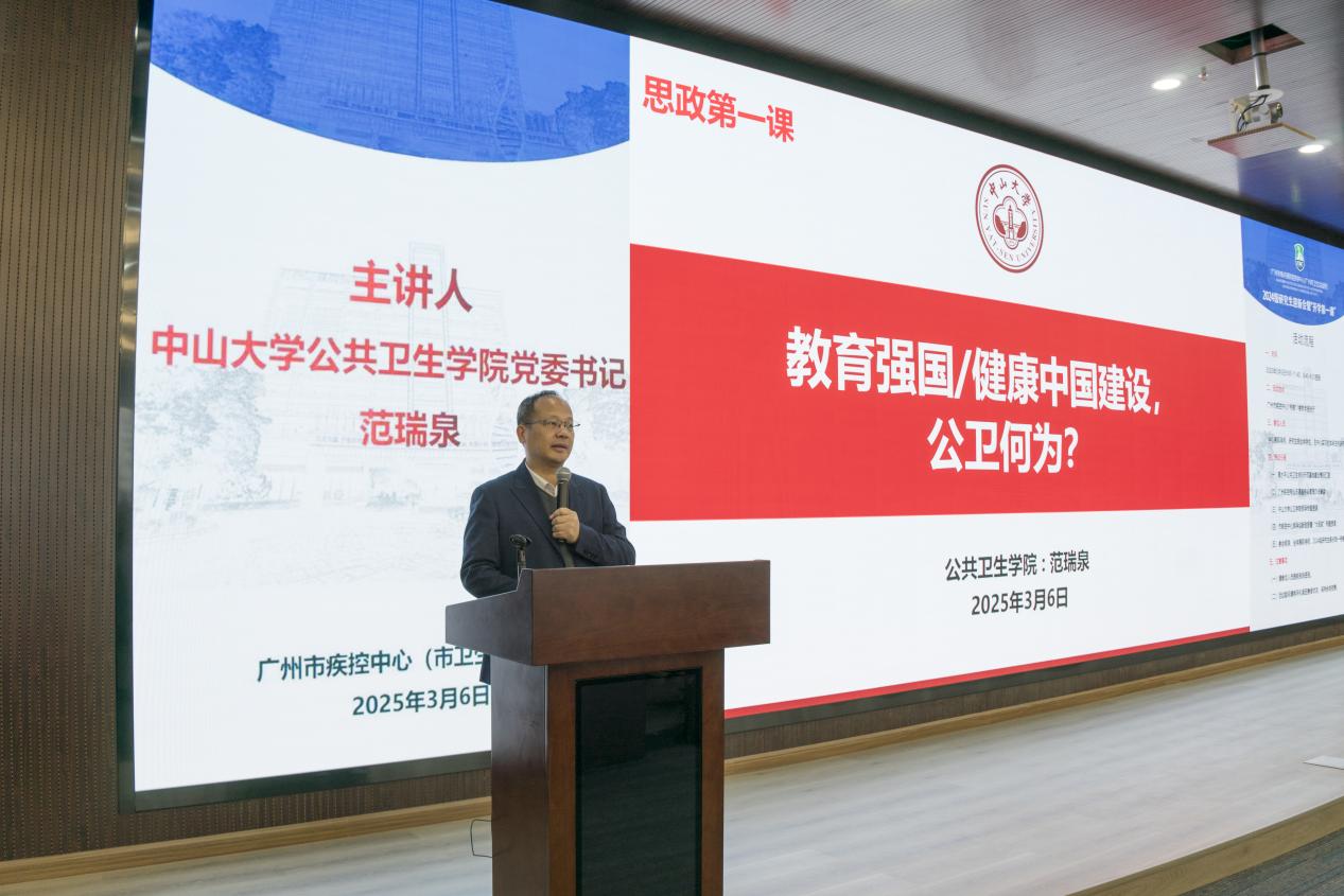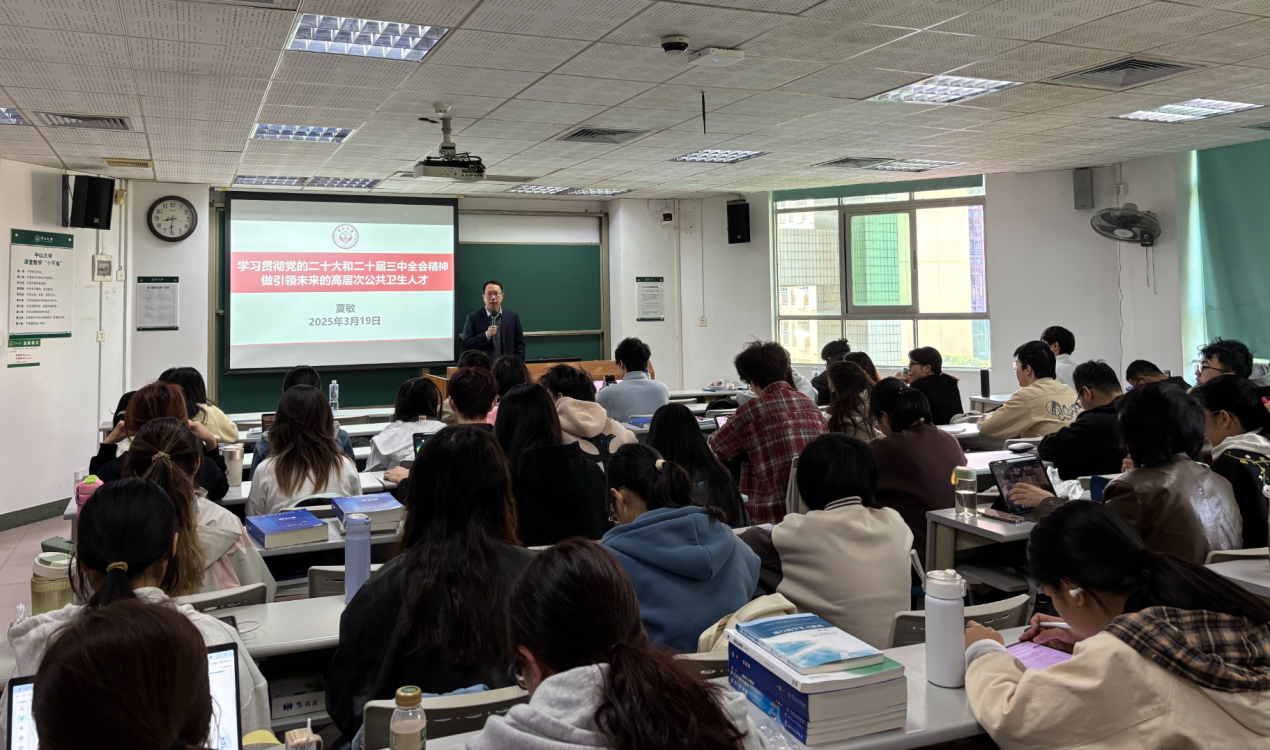 2025年3月,williamhill英国党委书记范瑞泉、院长夏敏为公卫学子讲授2024学年春季学期思政课,强化政治思想引领,深学细悟,筑牢思想根基。3月6日,范瑞泉书记赴广州市疾病预防控制中心面向学院2024级“医防管”三栖人才创新班的研究生上课;3月19日,范瑞泉书记、夏敏院长在北校园分别面向2024级全日制研究生、2023级本科生讲授思政课。