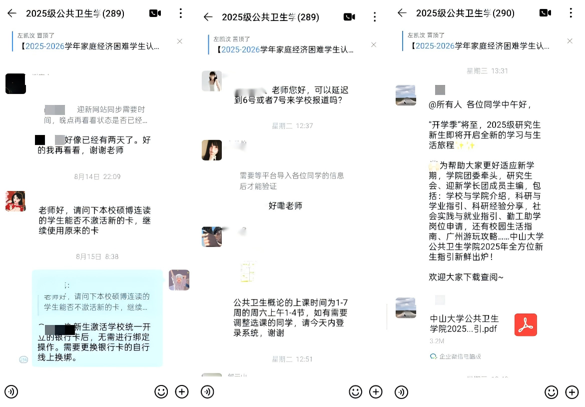 “请问逸仙卡什么时候可以激活使用呀?”“研究生宿舍是几人间呢?”“选课系统什么时候开放呢?”……随着报到日逐渐临近,随着开学日期临近,新生群里消息不断,面对即将到来的研究生生活,同学们既充满期待,也带着不少疑问。