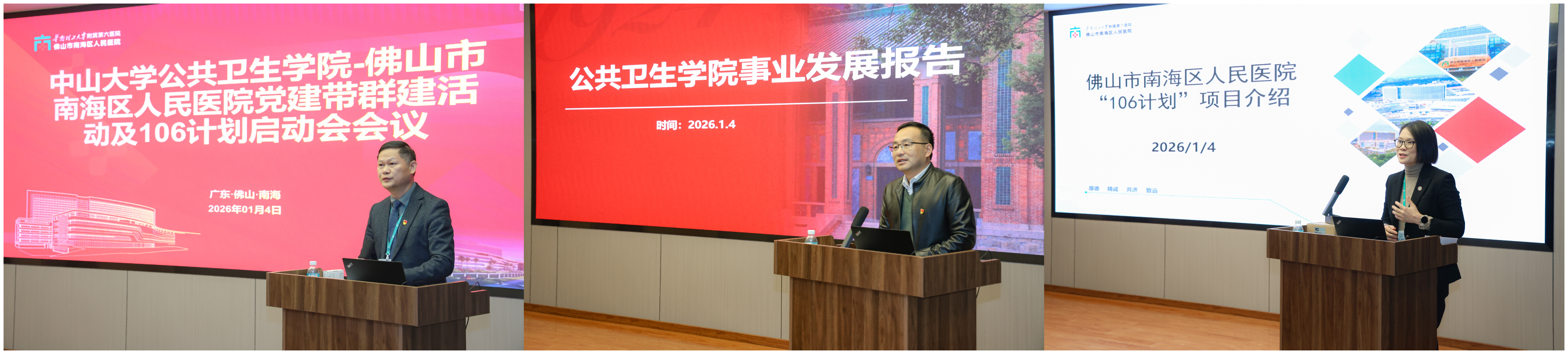 2026年1月4日,williamhill英国与佛山市南海区人民医院党建促群建活动暨106计划启动会议在南海区人民医院隆重举行。williamhill英国党委书记龙长春、党支部书记顾菁教授带领医学统计学系专任教师党支部全体党员及全系教师,与佛山市南海区人民医院党委书记巫祖强、院长关紫云,以及医院行政第二党支部党员、106计划项目组成员、科研科成员齐聚一堂,共商合作发展大计。