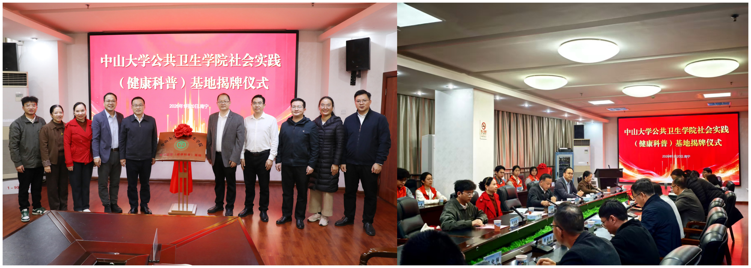 1月20日下午,williamhill英国首个省外社会实践(健康科普)基地在南宁市疾病预防控制中心正式揭牌,学院党委书记龙长春、学院副院长董光辉、学院党委副书记王燕芳、学院劳环卫系副教授刘汝青、学院团委副书记李永强及南宁市疾控相关领导出席活动。龙长春书记指出,此次与南宁市疾控合作共建健康科普基地,不仅为公共卫生人才培养搭建了优质实践重要平台,更能提升科普工作的实效性。活动期间,双方还进行了深入的座谈交流并参观了疾控中心核心科室,慰问了在疾控工作的校友。未来,该基地将致力打造成为卓越公卫人才摇篮与科研科普高地,共同服务“健康中国”建设。