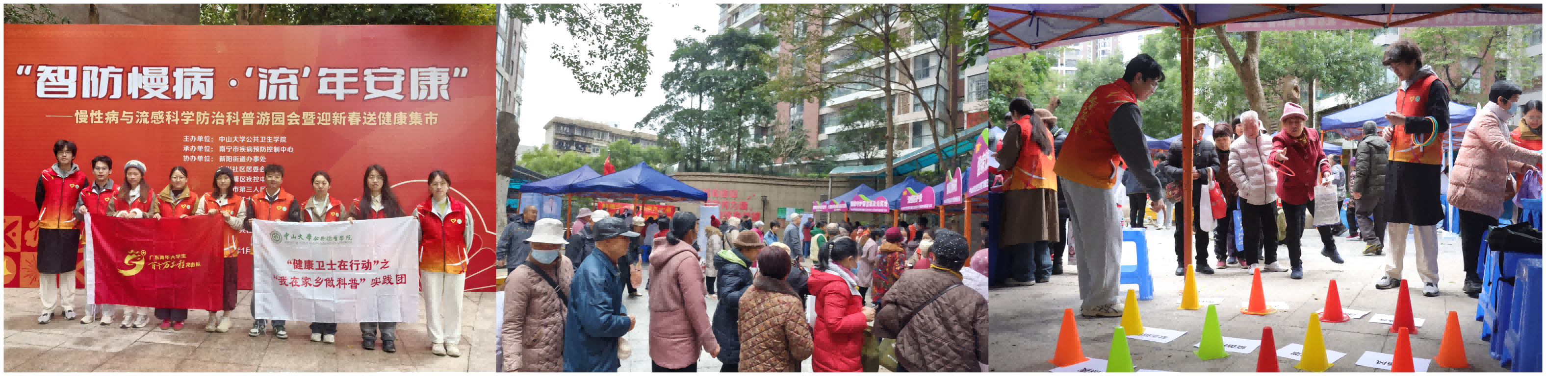 1月22日上午,在南宁市水悦龙湾社区,一场别开生面的“健康科普游园会”正如火如荼地进行。居民在“限盐手感大挑战”中亲手舀出5克盐,将膳食建议转化为真实感知;“谣言粉碎机”前,实践团成员通过问答破解常见健康误区,传递科学的慢病管理知识;“流感防护套圈”则让居民在游戏中学习流感防护知识,筑牢健康防线。在轻松的游戏互动中,健康知识悄然传递。实践团把科普融入社区日常,让健康理念在邻里间自然流转。