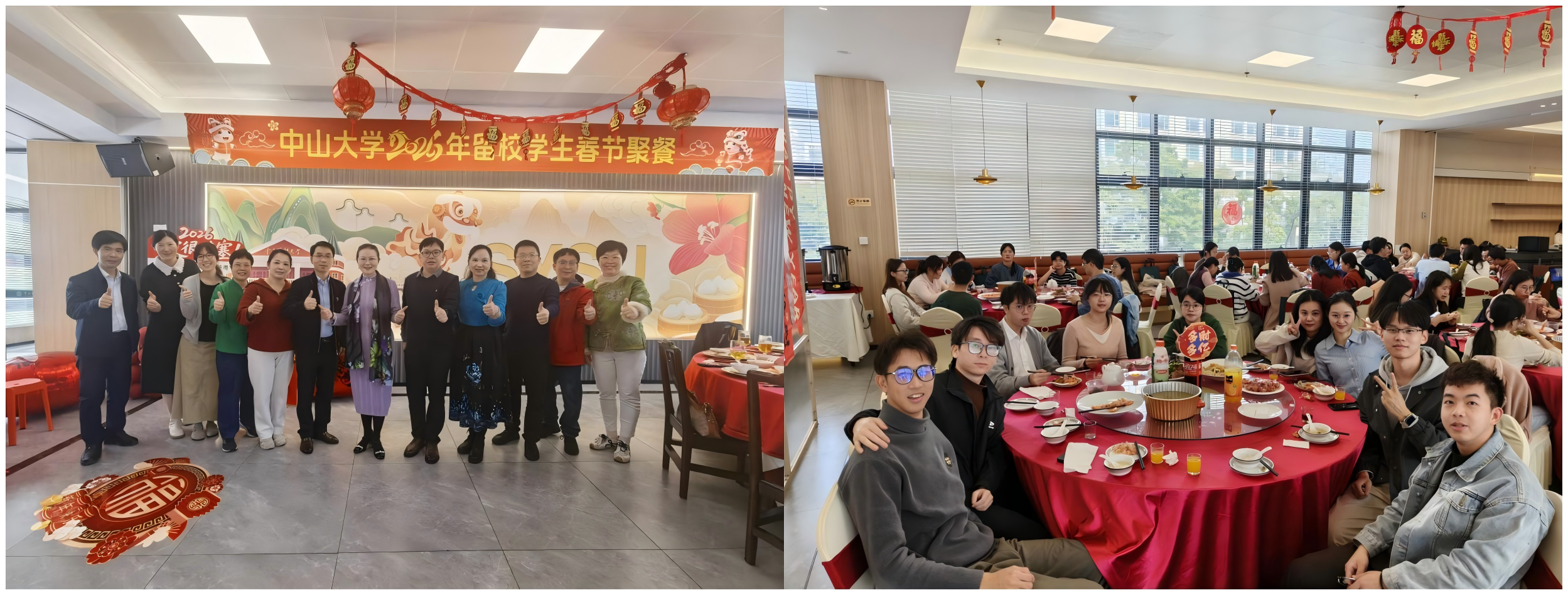 2月11日中午,学校举行2026年留校学生春节聚餐,学院共73名留校学子参加聚餐。校领导、学校相关职能部门老师、学院领导及辅导员老师与同学们围坐在一起话家常、送祝福,欢声笑语不断。一句句亲切问候、一声声暖心叮嘱,让留校学子感受到家一般的温暖与关怀,在温馨祥和的氛围中共迎新春、共话美好。